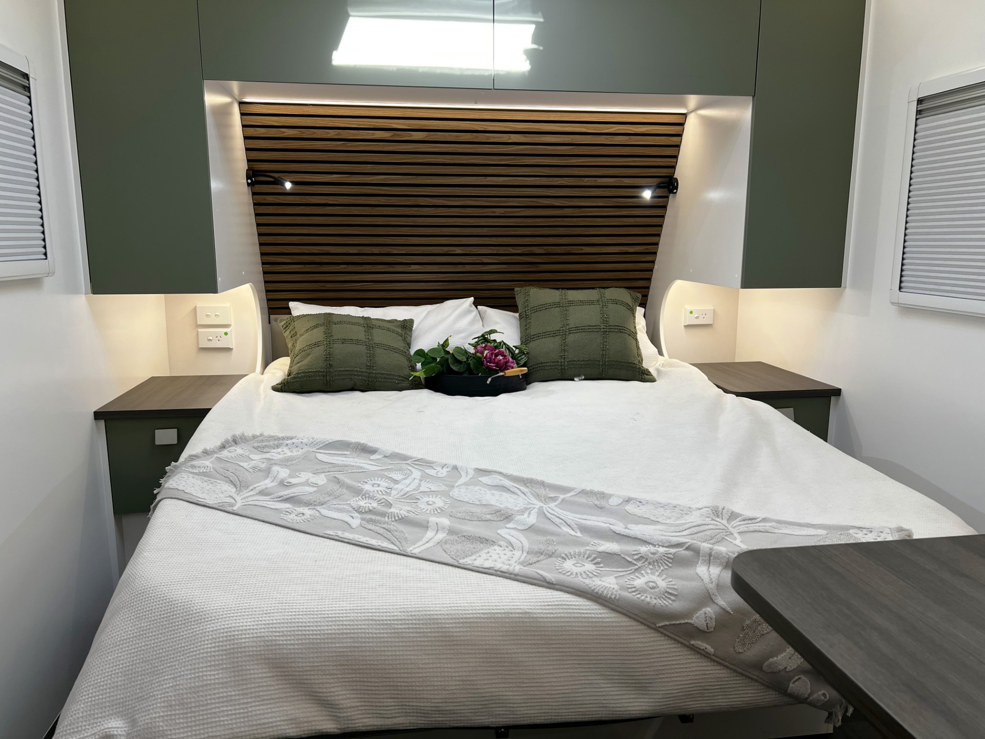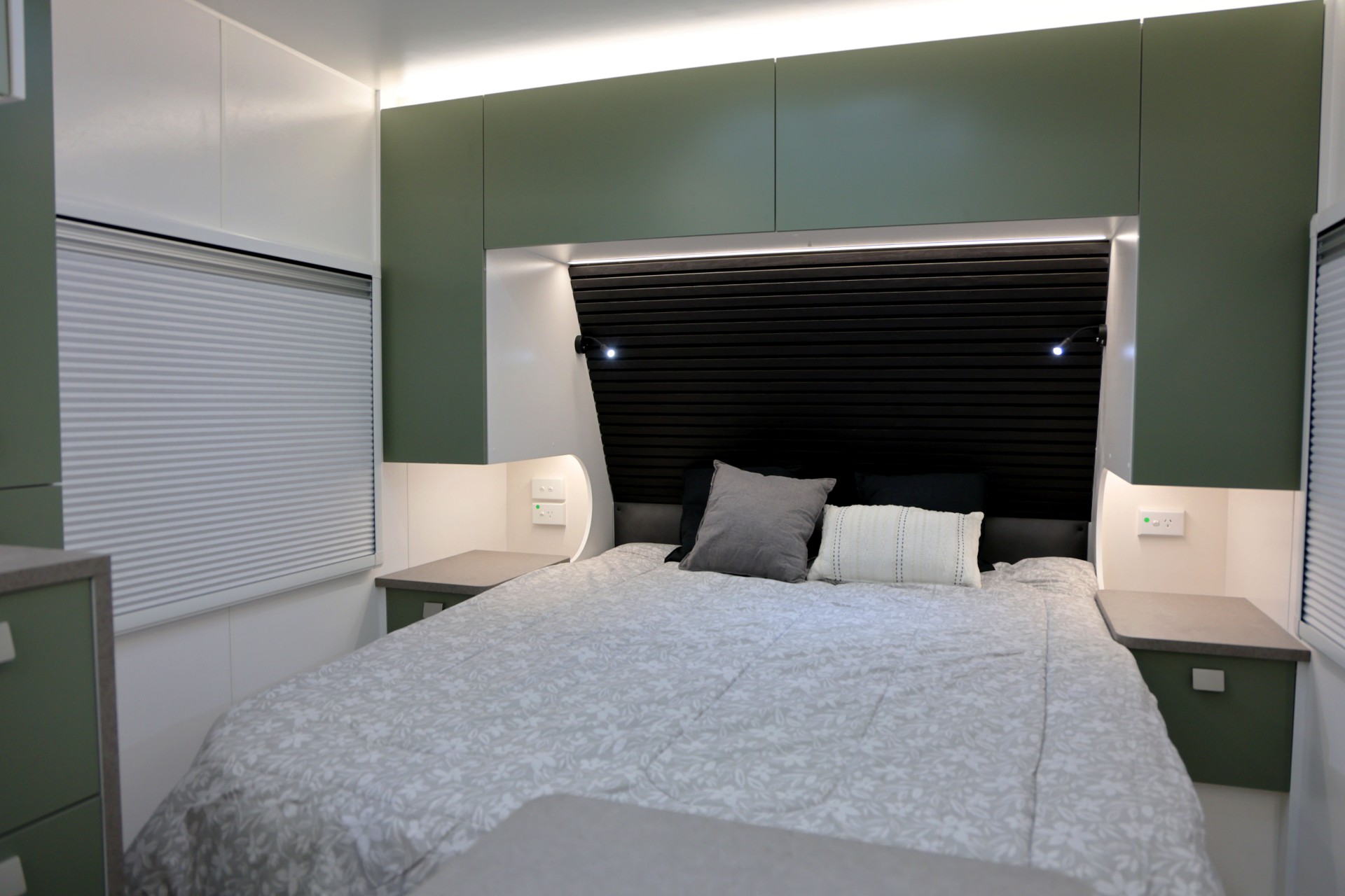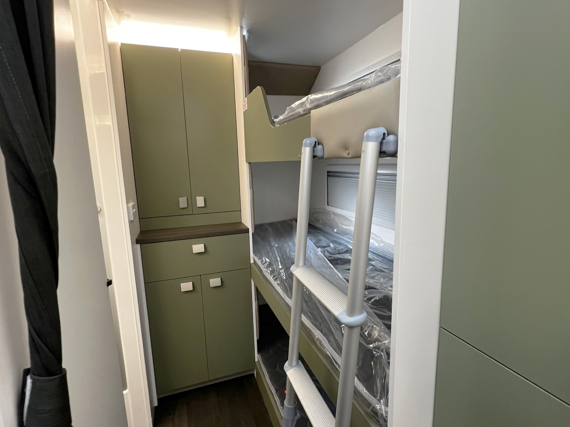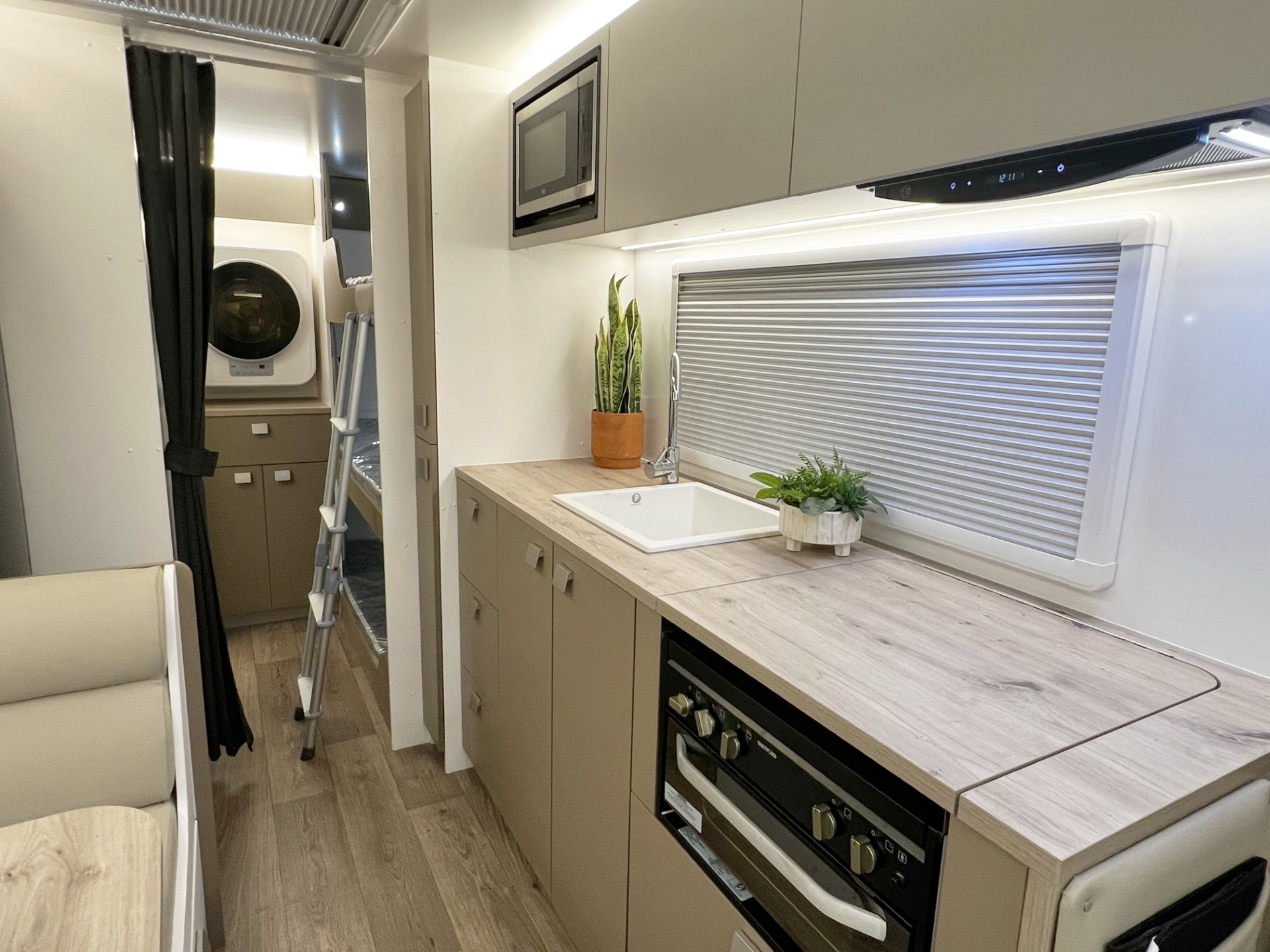 This year’s model introduces a new curved robe design, thicker 25mm benchtops, and a relocated kitchen and bunks to the doorside, maximising usability and flow. The toilet has been moved to the roadside for improved space distribution. Enjoy the convenience of internal and external USB-C charging, a modern single-bowl sink without drainer, and acoustic paneling for a quieter, more premium interior feel.